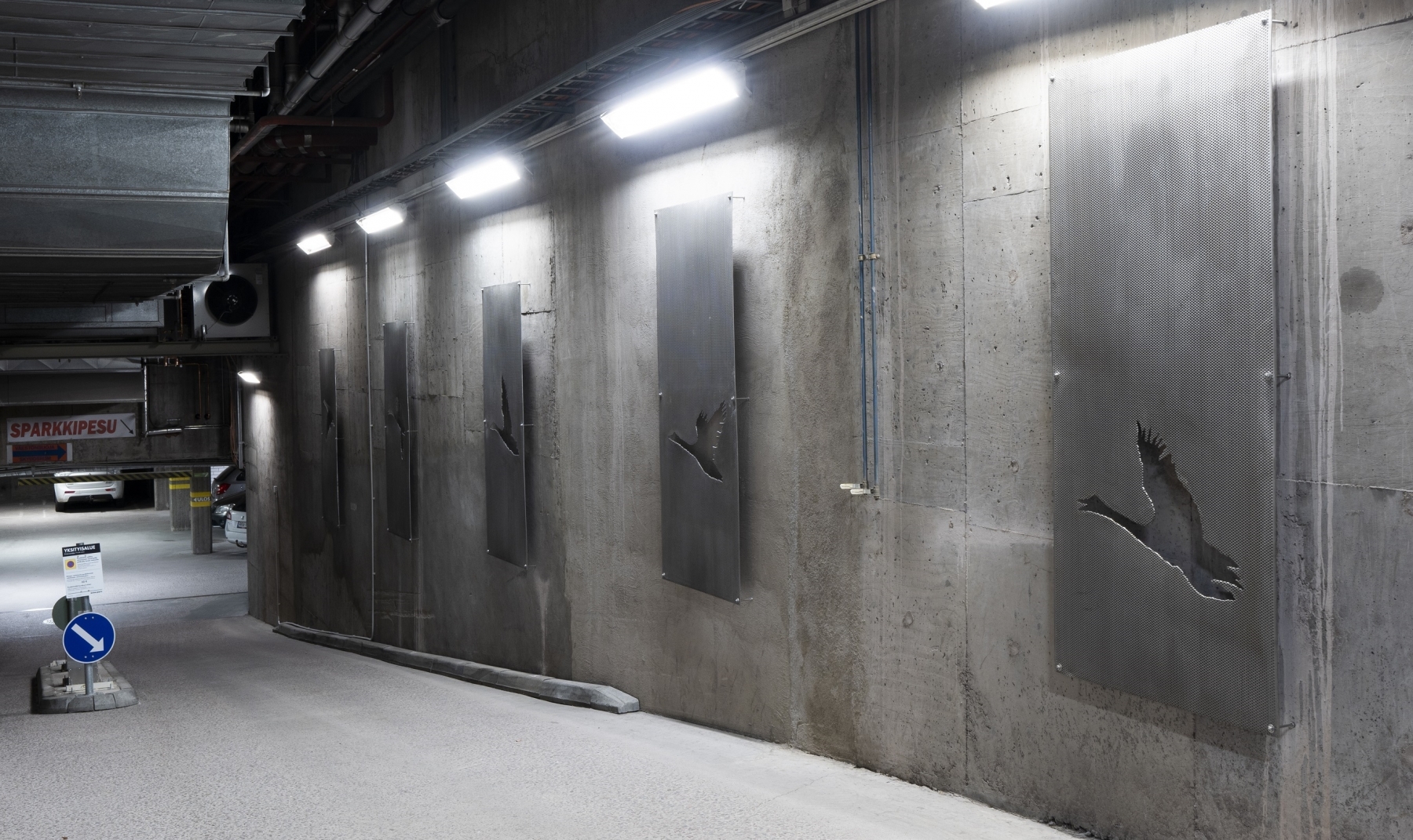 Kuvanveistäjä Samuli Alosen sympaattiset Citybird-linnut ovat löytäneet tiensä turkulaiseen parkkihalliin, jossa ne taapertavat orrella nostaen hymyn ohikulkijan huulille.