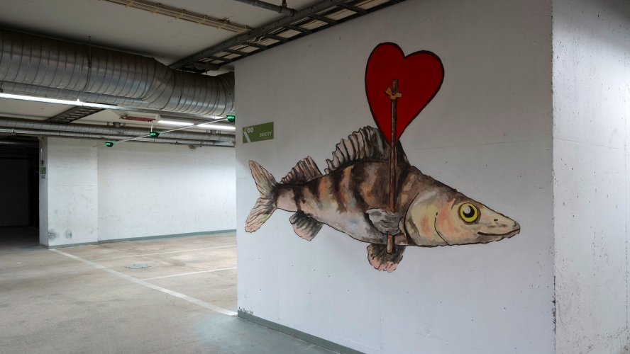 Maailma olisi parempi paikka, jos taide olisi lähempänä ihmisiä ja jokapäiväistä arkea. Seinällä uiskenteleva kuha pyrkii tuomaan iloa, lämpöä ja tunnelmaa ihmisten jokapäiväiseen elämään.