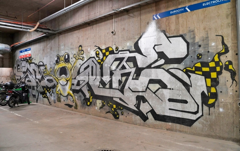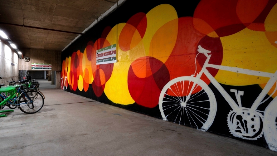 BioCityn autohallin pyöräparkkia koristava Cycles-seinämaalaus on 24 metriä leveänä ja korkeimmalta kohdaltaan 4,2 metriä korkeana parkkihallien isokokoisin muraali.